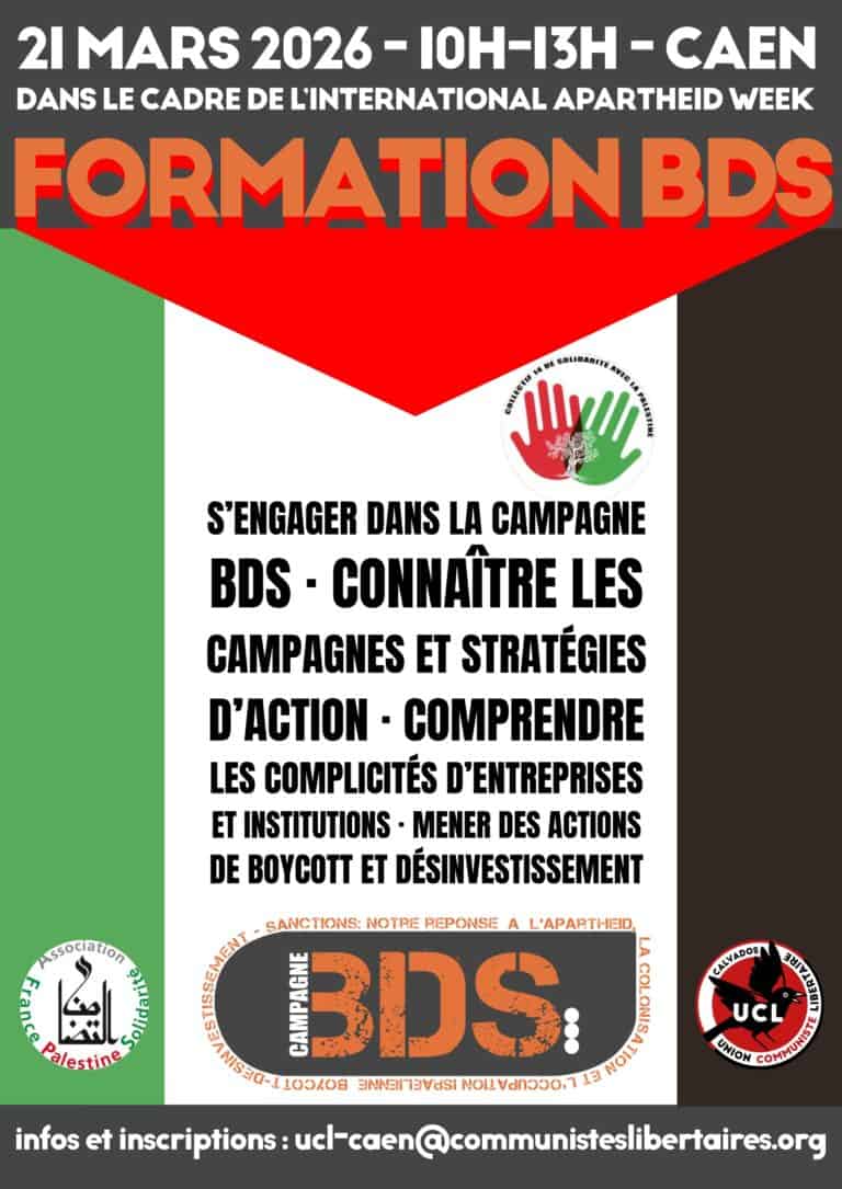 Formation BDS le 21/03 de 10h à 13h à la salle de la Maison de Quartier du Chemin-Vert, 3, rue Pierre Corneille à Caen. inscription ici : ucl-caen@communisteslibertaires.org Plus d’informations ici :