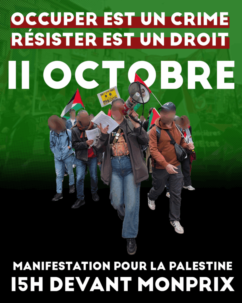 Soyons nombreuses et nombreux ce samedi à porter les couleurs de la Palestine et de la vérité alors que les fascistes organisent leur mascarade en soutient à l’état génocidaire israélien.