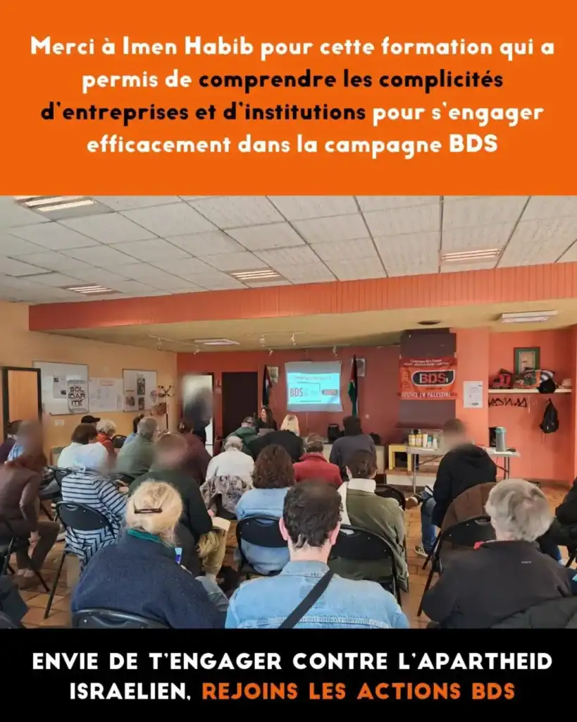 Retour sur la formation BDS du 21 mars30/03/2026Communiqué, International Plus d’infos sur https://www.bdsfrance.org Article précédent Caen 28 mars : Manifestation Régionale pour la Palestine 🇵🇸 Article suivant Café libertaire le 8 avril prochain